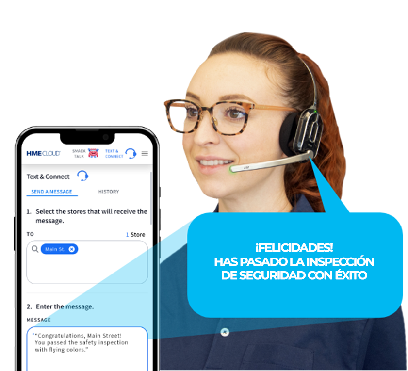 Ya sea para recordar a un equipo que debe completar una tarea específica, alertar a los gerentes sobre un cambio en un proceso, felicitar a una tienda que acaba de ganar un concurso de drive-thru o simplemente desear un feliz cumpleaños a un miembro del equipo, Text & Connect te mantiene conectado como nunca antes. Escribe tus felicitaciones o actualizaciones en HME CLOUD® y envíalas a grupos o tiendas seleccionados. Su mensaje de texto se convierte en audio y se reproduce en tiempo real a sus destinatarios a través de los auriculares NEXEO, sin interrumpir el drive-thru.